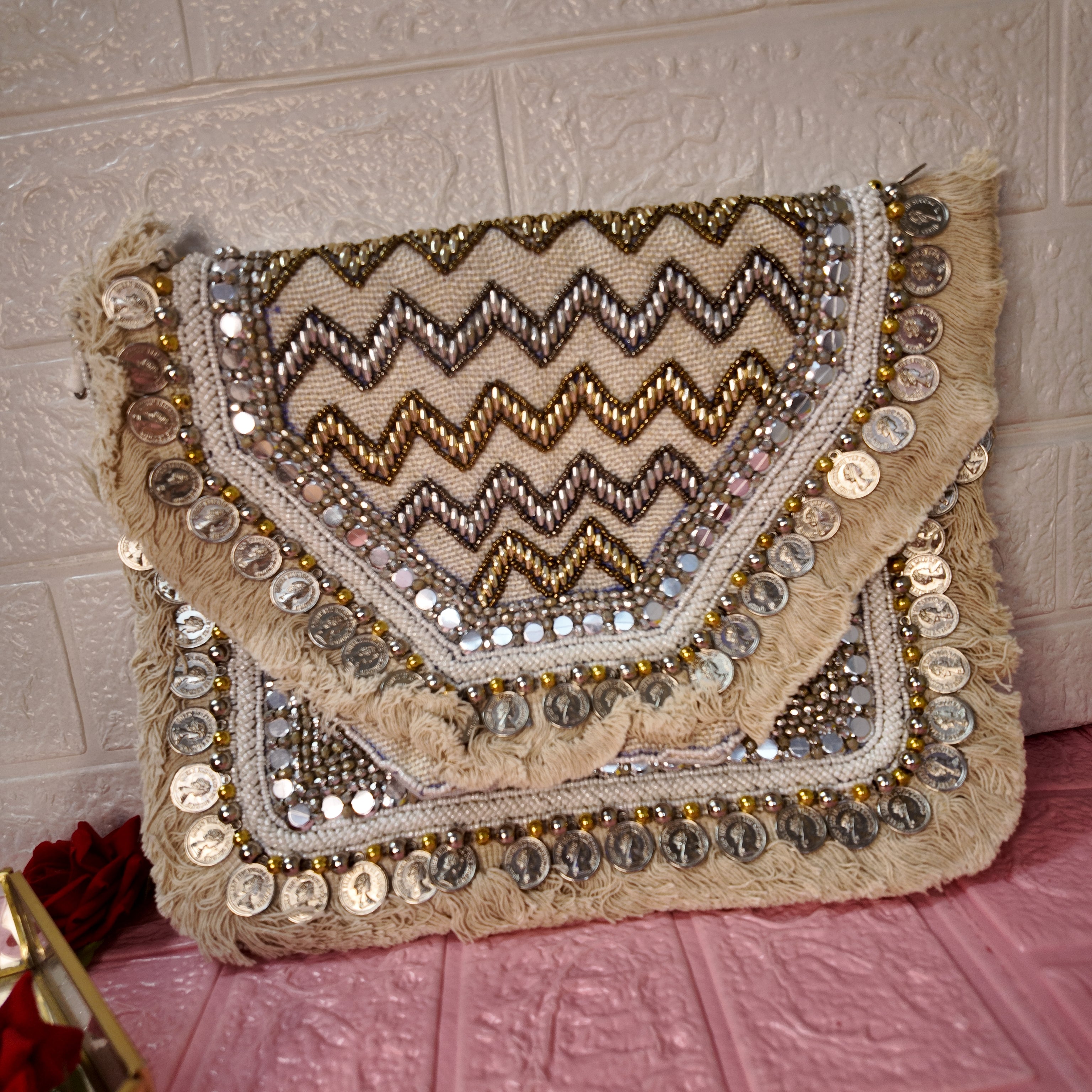 Unleash Your Inner Bohemian Chic with our Beige Gold Boho Bags!
